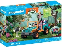 Den farverige terrængående bil PLAYMOBIL fra serien Animals & Friends inviterer børn på en eventyrlig tur gennem junglen. Bilen har plads til fire figurer, og der er også plads til de søde dyr – panda, lemur, koala, struds og kakadu. Med rigt tilbehør, skygge fra et løvtræ og en fuglerede stimulerer sættet fantasien og udvikler kreativ leg.