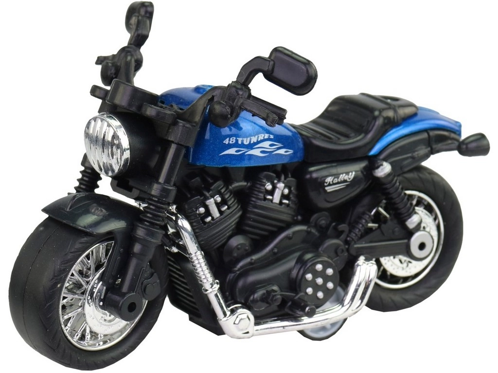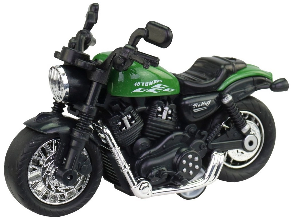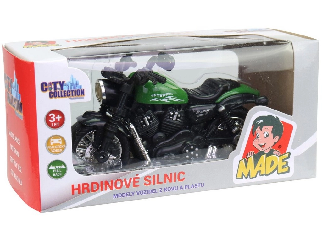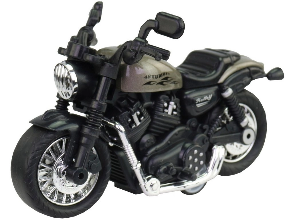 Denne detaljeret udførte metalmotorcykel er et godt valg til både leg og som samlerobjekt. Friløbsmekanismen gør det muligt at trække den tilbage og se den køre fremad. Den robuste konstruktion sikrer lang holdbarhed og sikker underholdning.