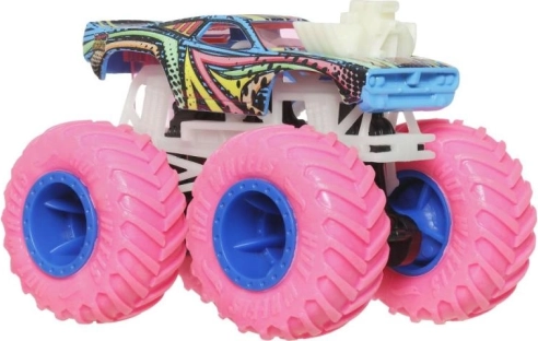 Skru op for action med Hot Wheels Monster Trucks, som med lysende elementer skinner selv i mørket. Den robuste konstruktion og de store hjul klarer fantasifuldt terræn, hop og dueller, mens ikoniske farver og prints giver en iøjnefaldende stil.
