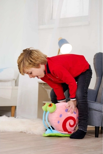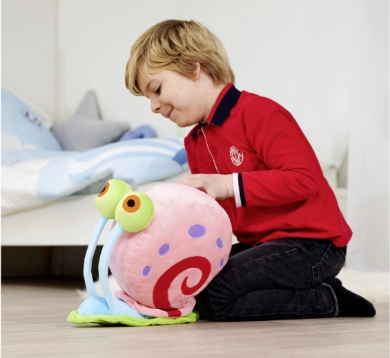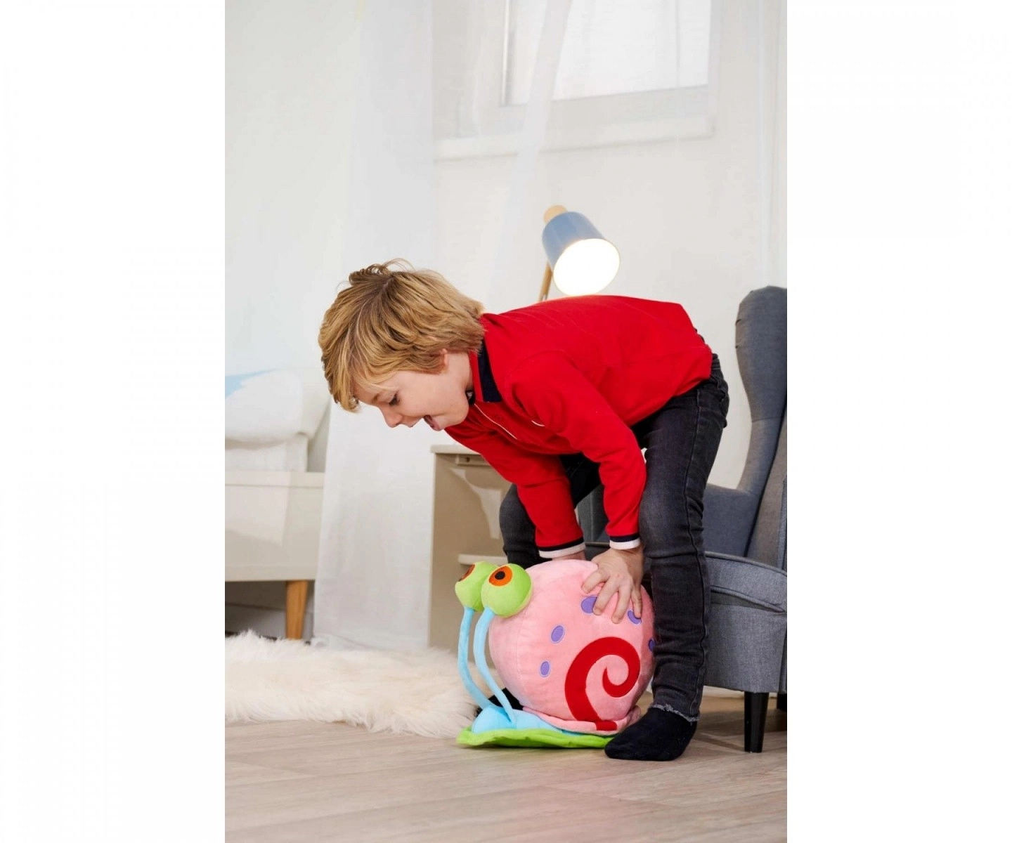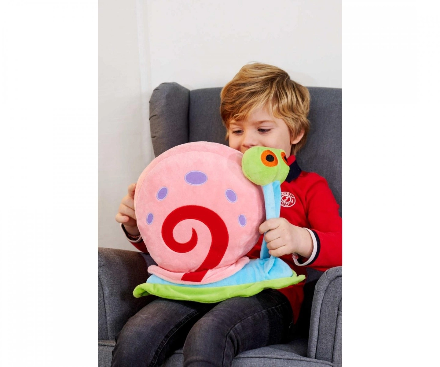 SpongeBobs yndlingskæledyr, sneglen GARY, kommer som en luftig plysdyr med kraftige farver, store øjne og silkeblød overflade. Takket være det behagelige materiale er den ideel til beroligende kram, leg derhjemme og som pynt på børneværelset.