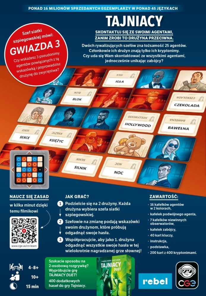 - Spændende samarbejde og konkurrence – to hold, ét mål: find alle jeres agenter før modstanderen.