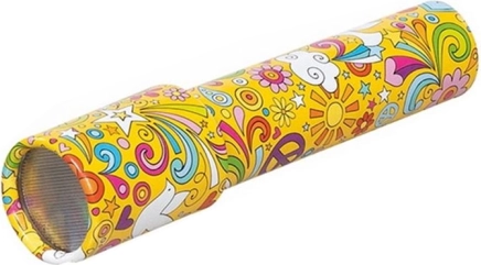 Kompakt og let at tage med design i pap og plast er ideelt til rygsækken. Børn kan tage kalejdoskopet med overalt.