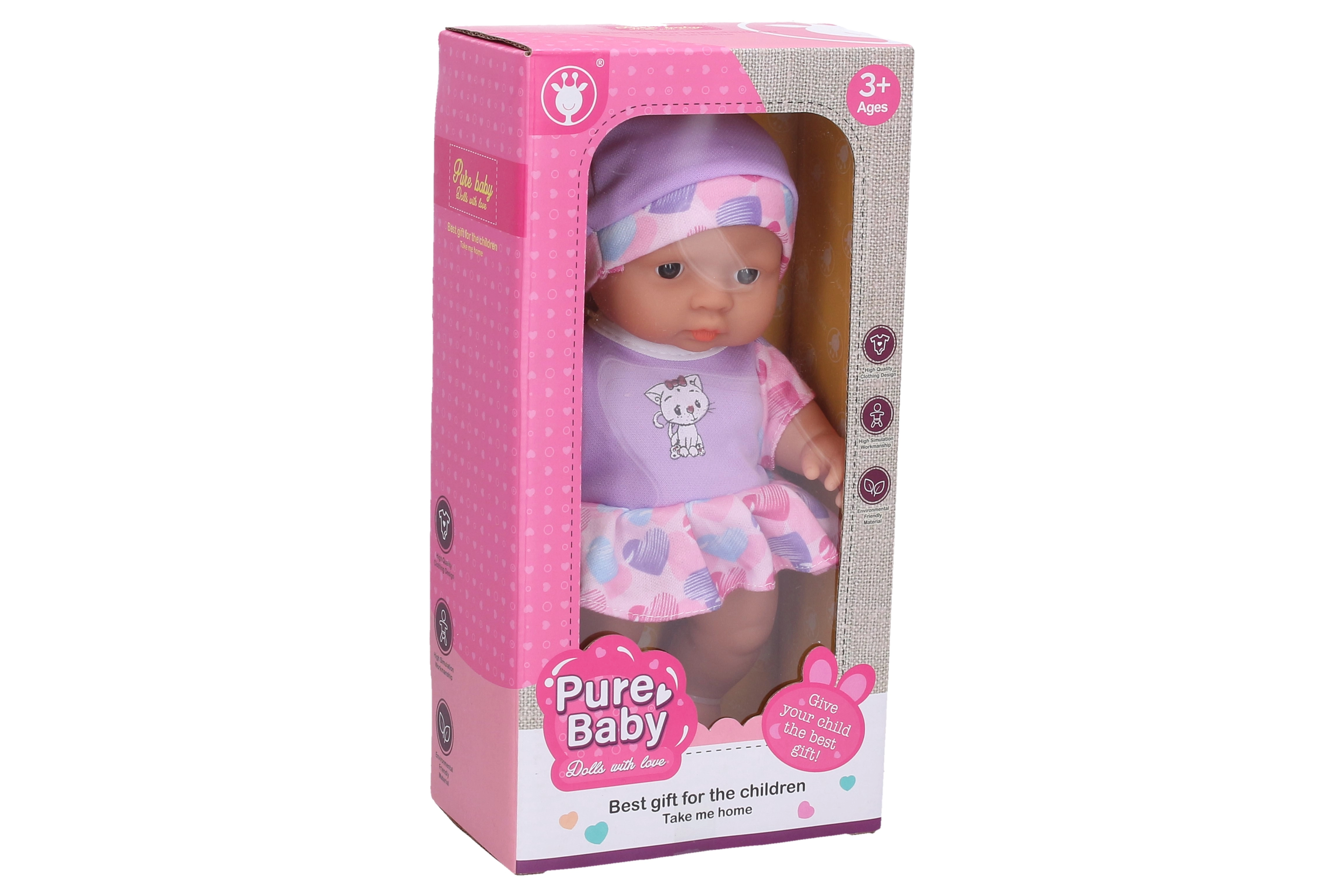 Leder du efter en kær dukke til den første leg? Denne baby i lilla udgave har den ideelle størrelse på 22 cm og er perfekt til små børn. Den lette, let at gribe dukke fremmer rolleleg, udvikler finmotorik og lærer børn omsorg og empati.