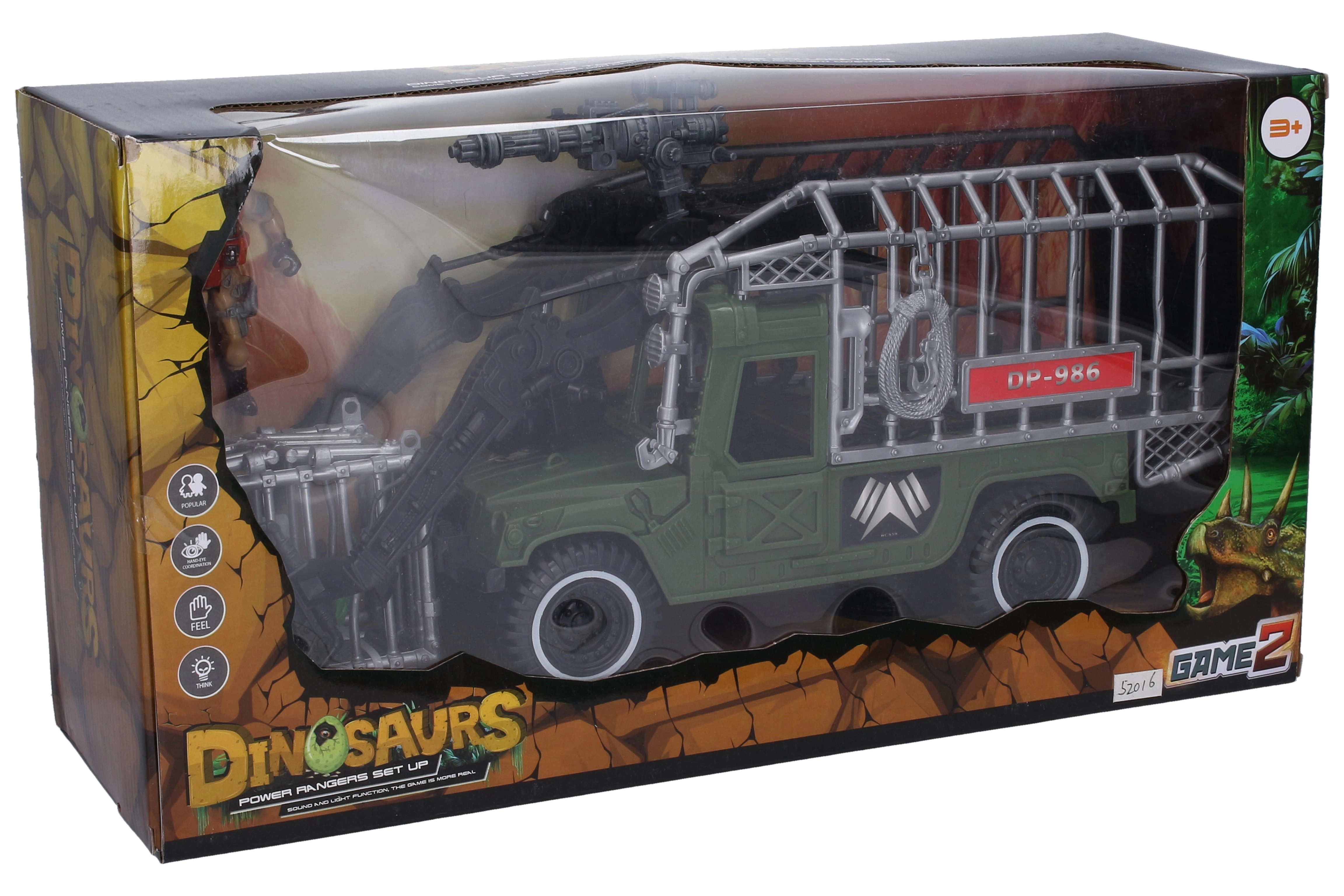 Tag på et spændende eventyr med det actionfyldte dinosaurjæger-sæt. Den store transportlastbil med bur muliggør sikker transport af fangede væsner, mens de detaljerede figurer stimulerer fantasien og udvikler børns kreativitet. Takket være friløbshjulene og indføreren foran er legen flydende og fuld af action.