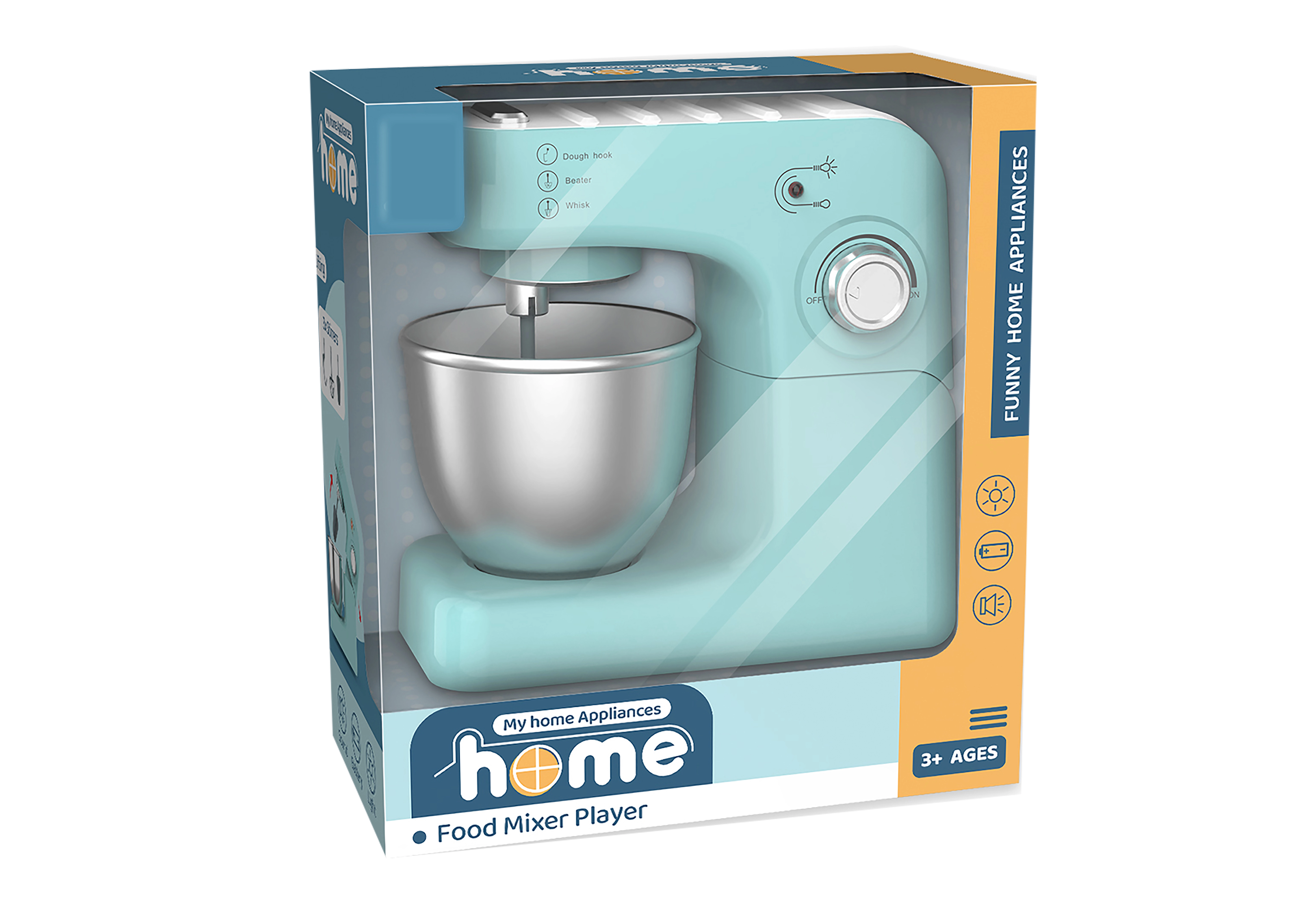 Denne køkkenmaskine til børn er en fantastisk gave til små madentusiaster og et perfekt tilbehør til ethvert børnekøkken. For at aktivere funktionerne skal du indsætte 2× AA-batterier (medfølger ikke i pakken).