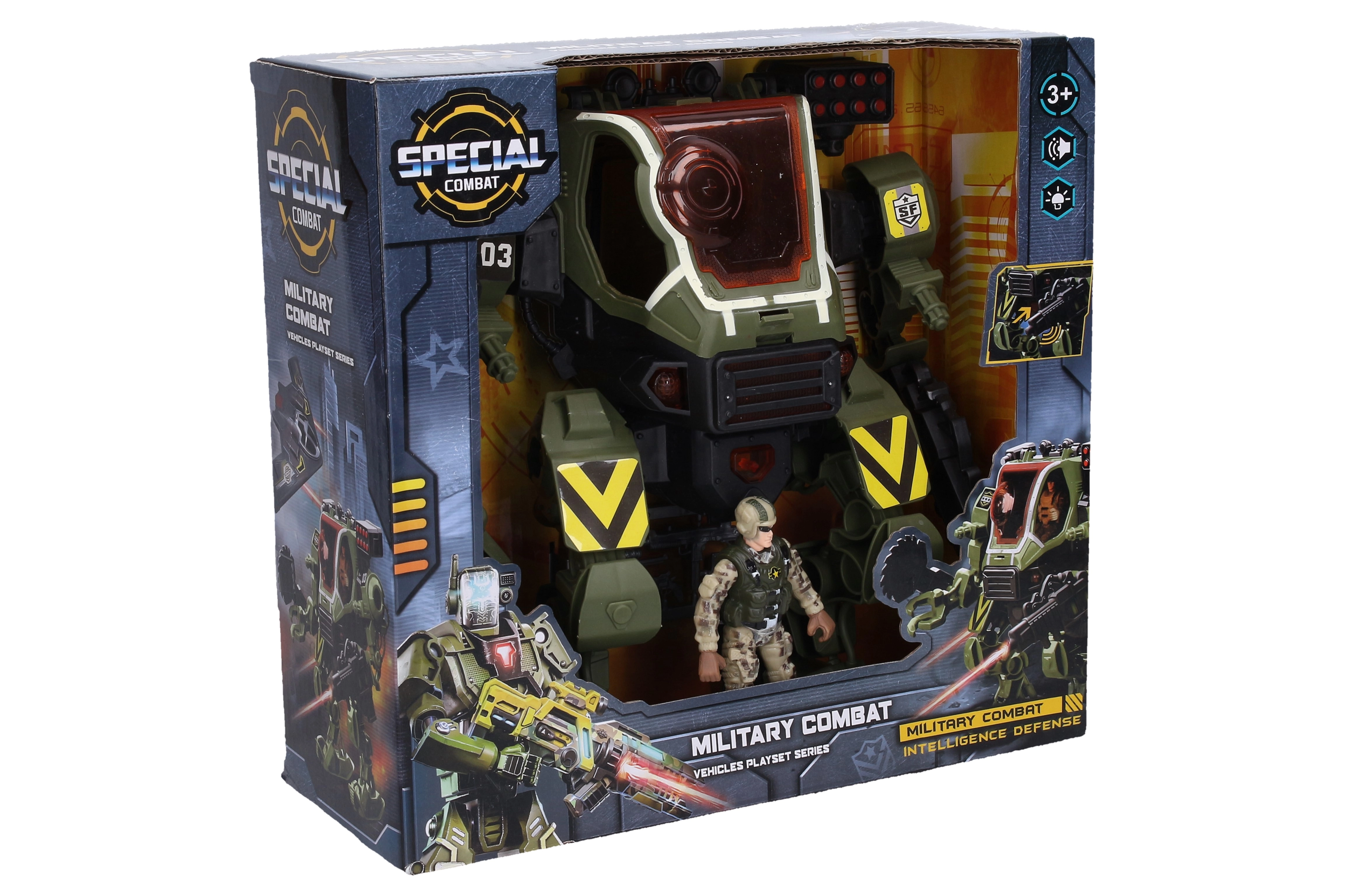Oplev en verden af futuristiske slag med kamp-mecha-robotten, som begejstrer både små og store fans af actionlegetøj. Realistiske lys- og lydeffekter skaber en dynamisk atmosfære og understøtter kreativ leg. Takket være nem betjening med én knap kan børn hurtigt skifte mellem forskellige lydtilstande.