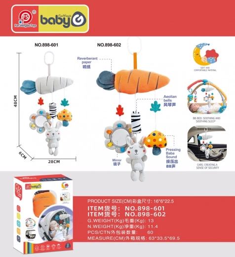 Sensorisk ophængslegetøj til barnevogn, tremmeseng eller autostol er egnet fra de første leve dage. Det er lavet af bløde og sikre materialer, byder på knitrende og pivelyde, vindspil og et sikkert spejl. Livlige farver støtter koncentration, gribeevne og sanseudvikling hos babyen.