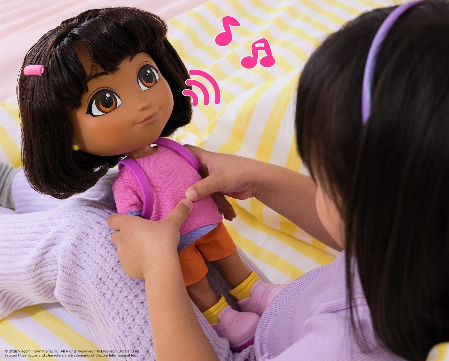 Træd ind i eventyrets verden med DORA-dukken, der synger, taler engelsk og laver glade lyde, når du trykker på maven. Med realistisk, blødt hår er den ideel til at børste og style, mens aftagelige sko og tilbehør fremmer kreativ udklædning og fortælling af egne historier.