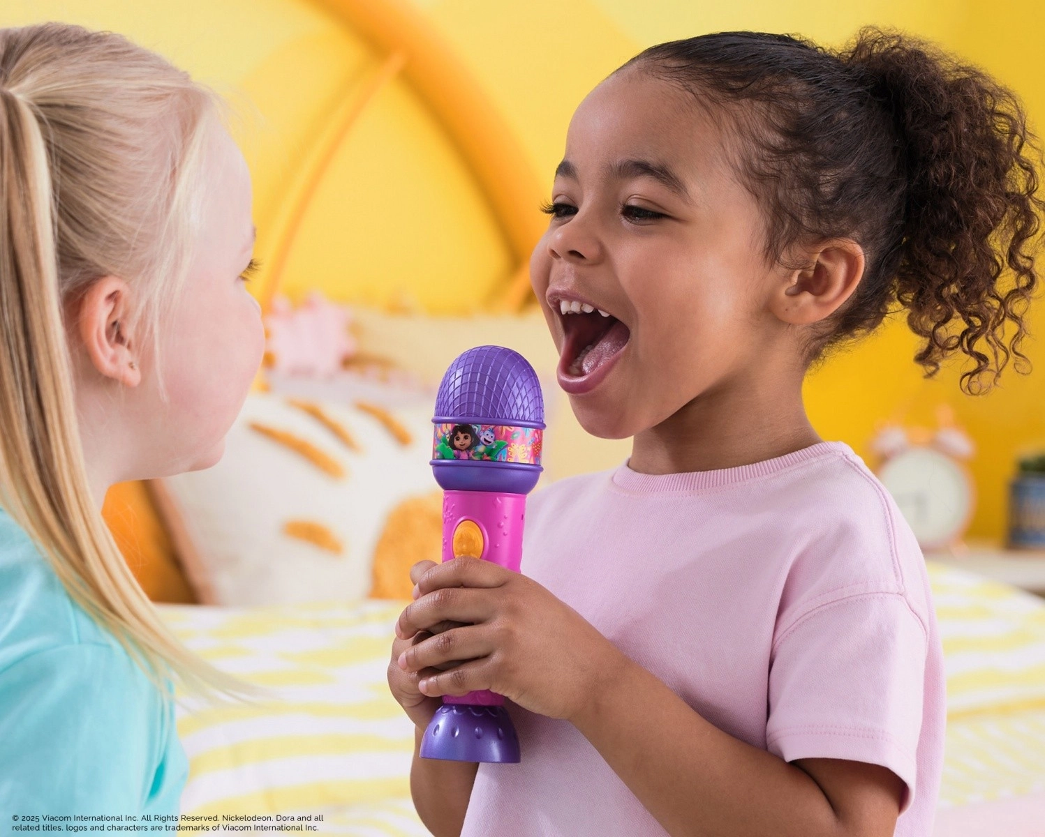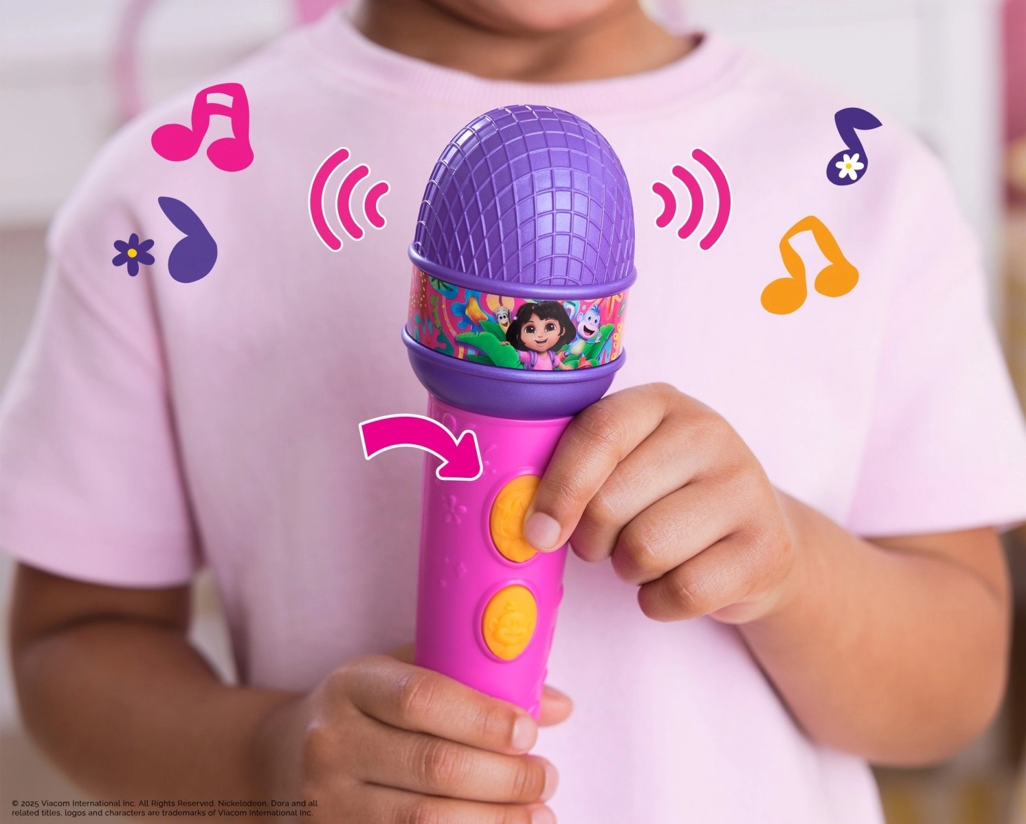 Oplev magien ved at synge med DORA børnemikrofonen! Denne farverige mikrofon byder på lydeffekter, 5 populære sange og tosprogede fraser fra DORA og hendes ven Butka. Takket være nem betjening kan børn nyde at synge, danse og lege rollespil – ideel størrelse til en barnehånd, og batterier medfølger i pakken.