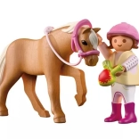 Både pigen og ponyen har bevægelige dele, så de let kan stilles i positioner til fodring, træk og rideture.