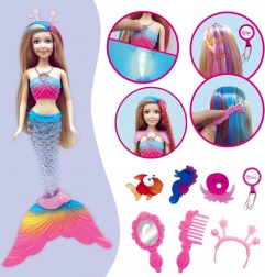 Pakken indeholder et rigt udvalg af tilbehør – børste, kam, spejl og kroner – som understøtter finmotorik, kreativitet og udvikling af sanserne. Dukken er et glimrende valg til børn, der elsker eventyr, farver og en magisk atmosfære.