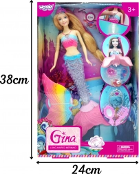 Havfruedukken WOOPIE Gina bringer børn ind i en eventyrverden fuld af lys, musik og fantasi. Den regnbuefarvede bevægelige hale med lyserød finne, den farverige top og det lange blonde hår indbyder til at børste, flette og style. Indbyggede lyd- og lyseffekter forstærker legeoplevelsen og forvandler værelset til et undervandskongedømme.