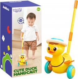 Den stabile konstruktion, de brede hjul og den segmenterede stang med praktisk længdejustering gør det let at styre legetøjet på glatte gulve. De klare farver og det smilende design understøtter sanseoplevelsen og glæden ved bevægelse.