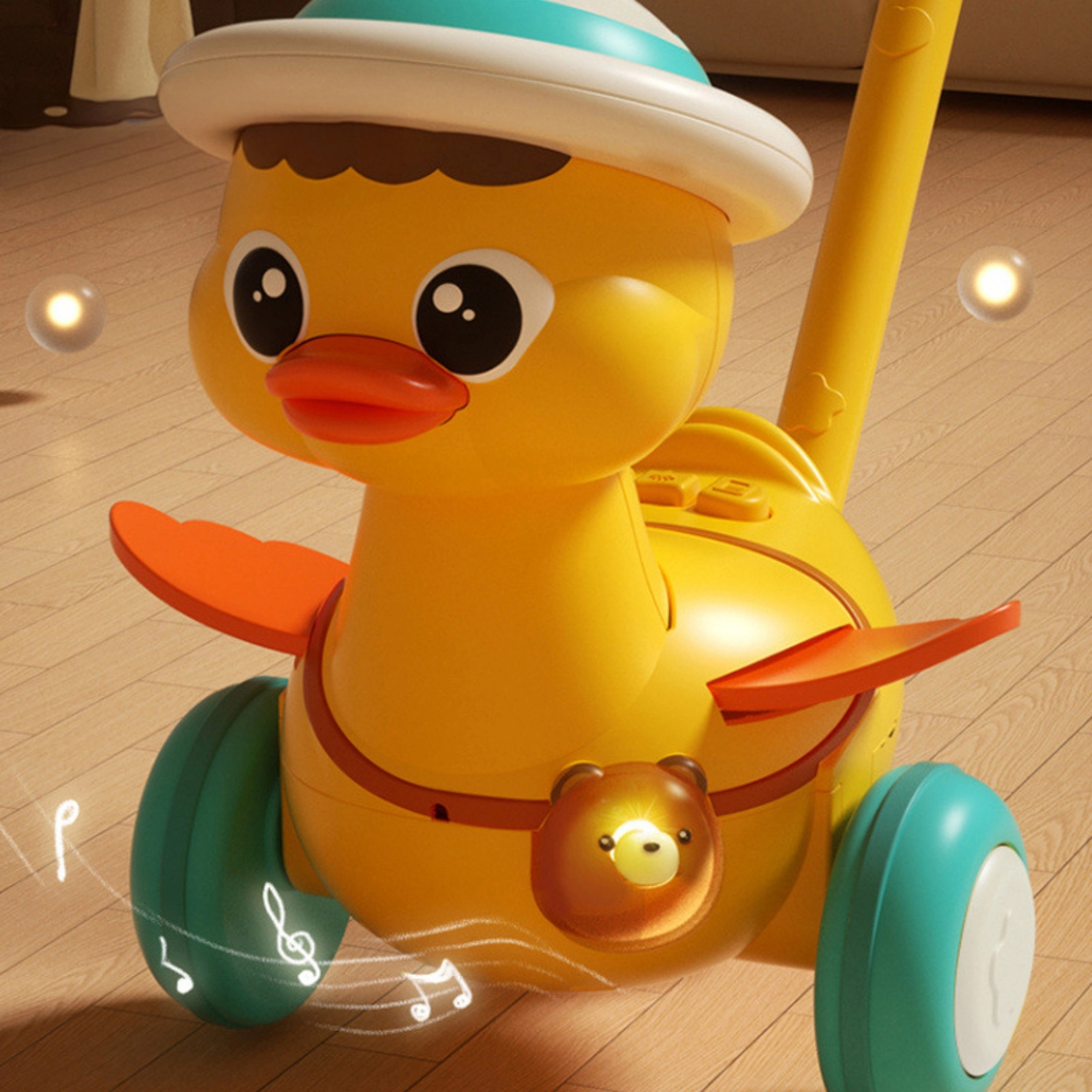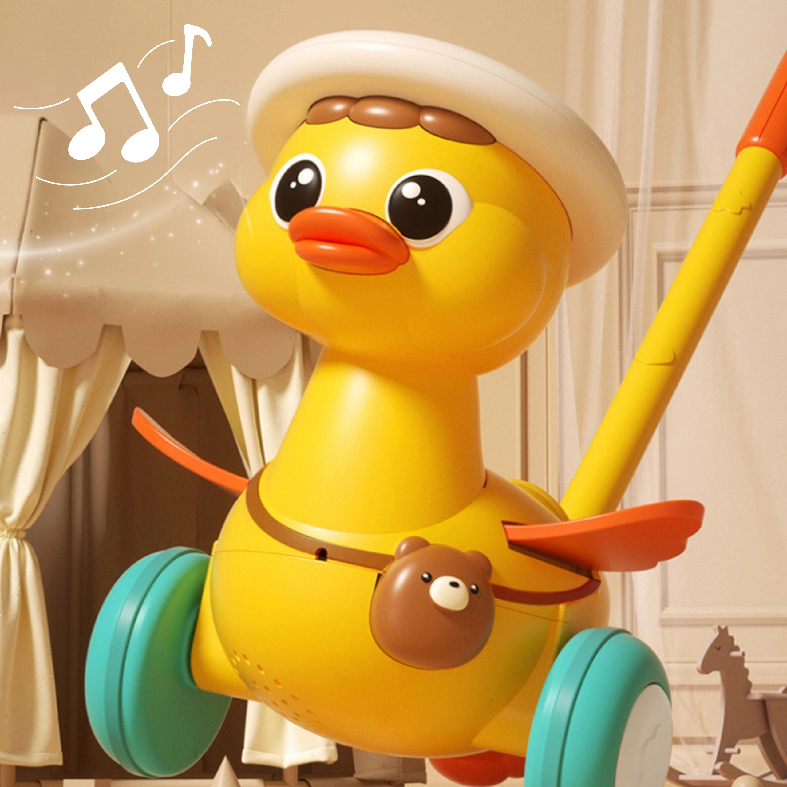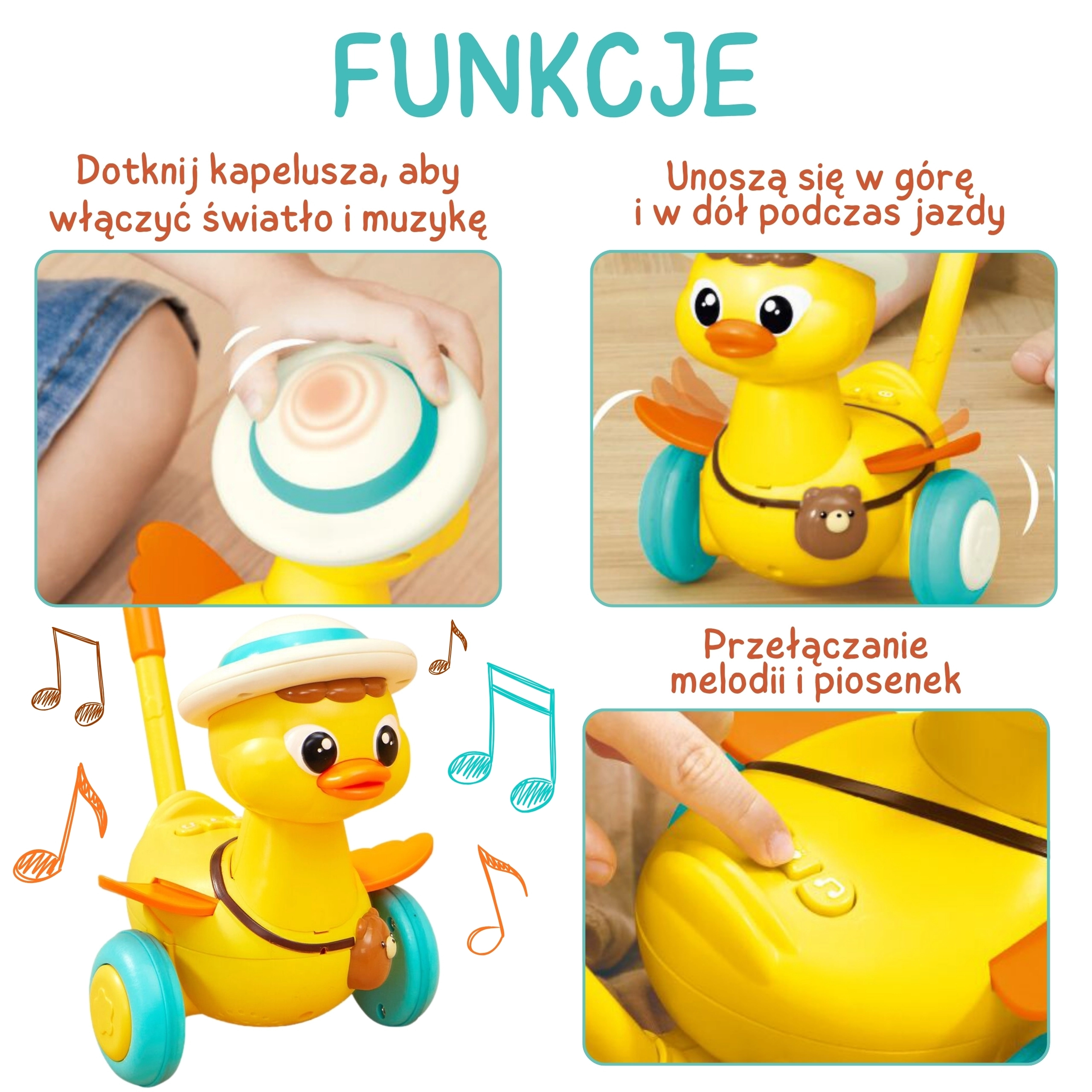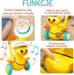 WOOPIE børneand på styrestang er det ideelle legetøj til de første gåture derhjemme. Under bevægelse vugger den sødt, vifter med vingerne og holder barnets opmærksomhed med lys- og lydeffekter. Intuitive knapper på kroppen aktiverer melodier og lys, som motiverer til flere skridt.