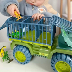 Dinosaur‑transporteren fra Woopie forener verdenen af forhistoriske væsner og kraftfulde maskiner. Børnene bliver fanget af det realistiske look med “hud”‑tekstur, kam, kløer og den markante T‑REX‑kæbe. De åbnebare bure og den rummelige ladflade indbyder til at organisere last og skabe actionfyldte scenarier.