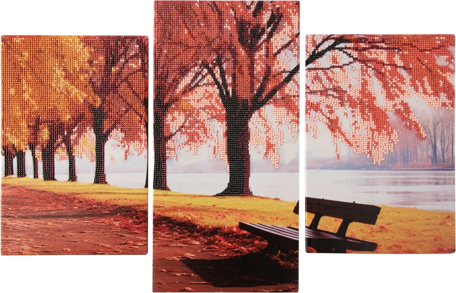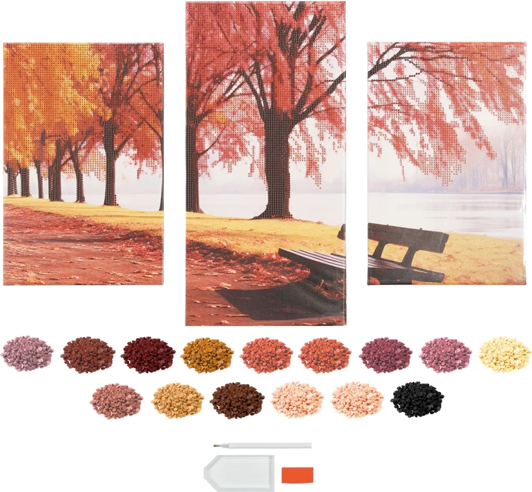 Skab et glitrende tredelt billede med landskabsmotiv ved hjælp af et diamantmalingssæt. Hvert lærred har et klæbende lag og en overskuelig legendeseddel, så du nemt kan placere stenene de rigtige steder. Resultatet er en strålende dekoration, der lyser enhver væg op og giver afslapning, kreativ fordybelse og glæde over det færdige værk.
