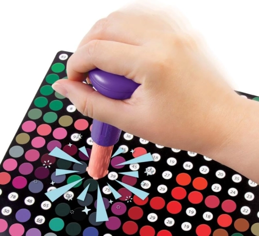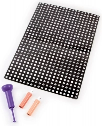 Alt er klar lige efter du åbner æsken – et ergonomisk stempel for et behageligt greb, tydeligt markerede prikker for fejlfri orientering og mere end 600 prikker for langvarig underholdning. Ideelt til at udvikle finmotorik, koncentration og tålmodighed og samtidig et perfekt valg til rolig, afslappende kreativitet.