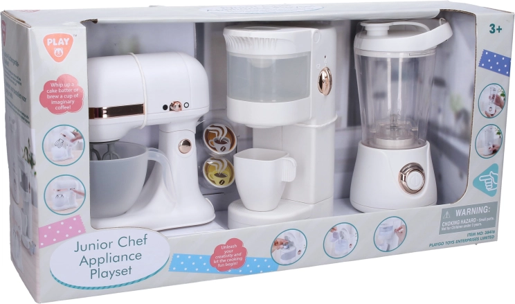 Det sjove PLAYGO-sæt med børne-køkkenapparater bringer realistisk leg i køkkenet. Indeholder en blender, en kaffemaskine med vandtank og en køkkenmaskine med funktioner, der begejstrer børn og stimulerer deres fantasi.