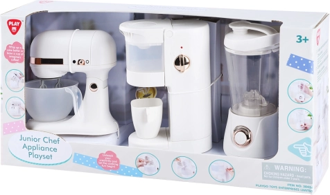 Dette 3-i-1-sæt fra PLAYGO er ideelt til små kokke. Børn kan lave “kaffe” med kaffemaskinen med en rigtig vandtank, blande drikke i blenderen og piske i køkkenmaskinen. Rolleleg i hjemmet udvikler finmotorik, kreativitet og sociale færdigheder.