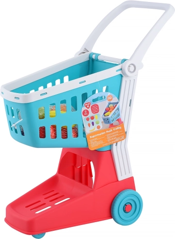 PlayGo-legensæt giver børn en autentisk indkøbsoplevelse. Takket være den stabile vogn og sættet med madvarer lærer små købmænd at genkende grundlæggende madtyper og øver hverdagssituationer fra det virkelige liv. Det robuste plastdesign er ideelt til brug derhjemme og til fælles leg med søskende.