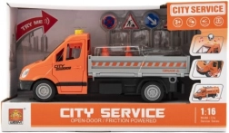 Hold byen i orden med en detaljeret vejvedligeholdelsesbil. Takket være friktionsmotoren kører køretøjet, når det skubbes, lys- og lydeffekter forstærker stemningen af ægte vejarbejde, og de medfølgende skilte, kegler og hjælpemidler udvider lege-scenarierne.