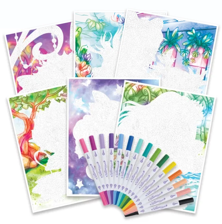 Opdag en kreativ verden med Nebulous Stars-sættet til maling efter tal, som indeholder 36 sider til farvelægning og 15 dobbeltsidede tuscher. Takket være det robuste etui med magnetlukning er det ideelt til rejser og ryddelig kreativ leg uden rod.