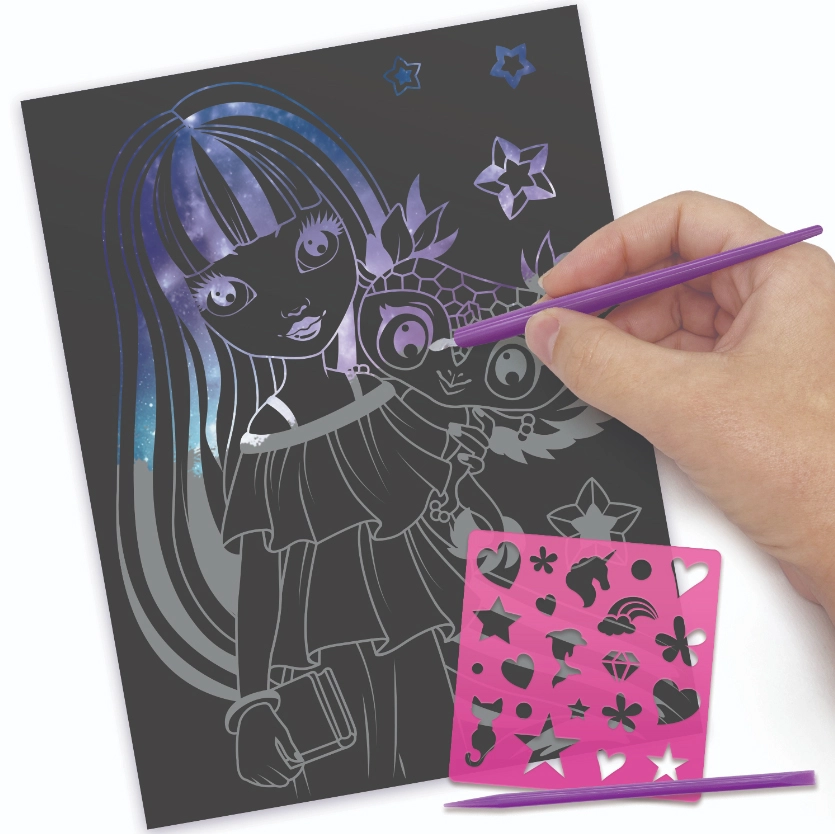 NEBULOUS STARS skrabesættet er ideelt til at udvikle kreativitet, finmotorik og tålmodighed. Med de medfølgende værktøjer afslører børn farverige motiver og skaber originale billeder efter skabelonerne eller deres egen fantasi. Isadoras historie giver skaberglæden en magisk stemning.