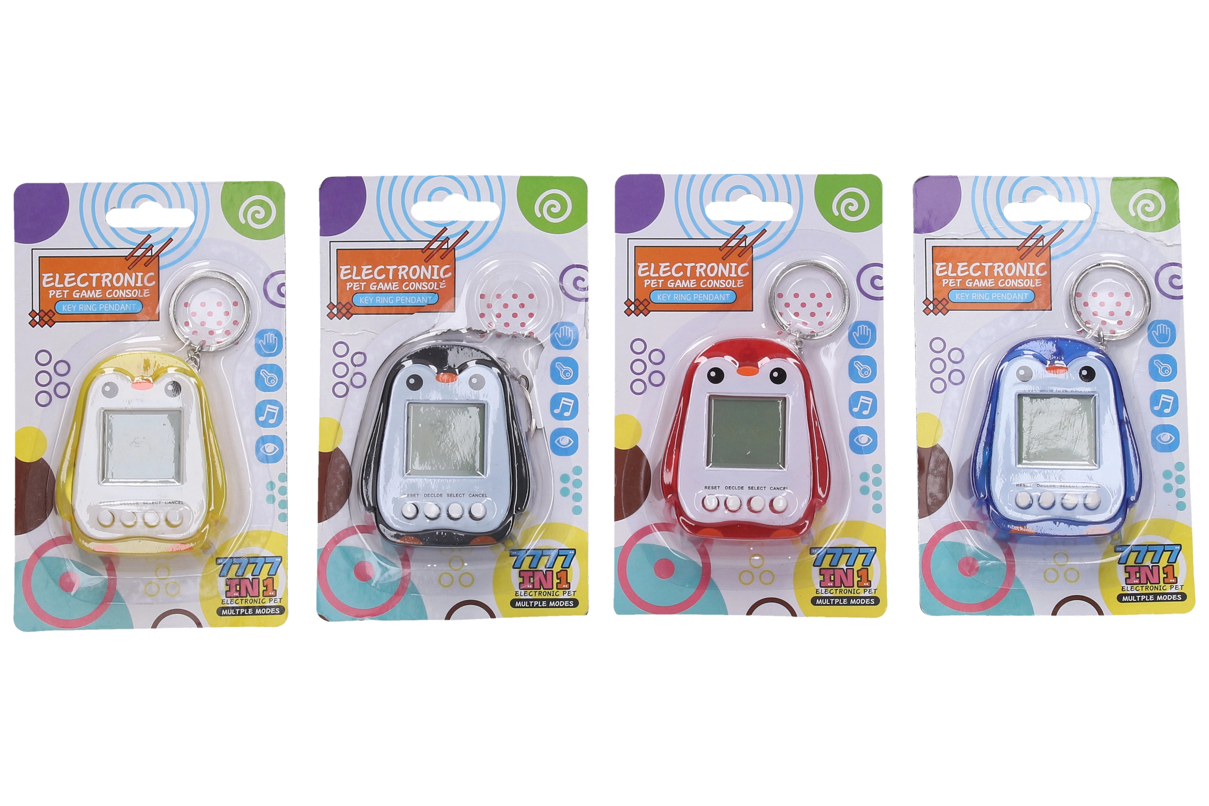 Det elektroniske kæledyr Pingvin er et sødt lommerspil, der underholder både børn og voksne. Takket være de kompakte mål passer det i lommen eller på nøgleringen, så du kan have det med overalt. Vælg mellem mange virtuelle kæledyr og tag dig af dem direkte på den lille skærm. Ideelt som gave, lille partygave eller rejseledsager.