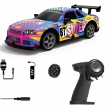 Opdag en RC-bil, der leverer maksimal underholdning på enhver overflade. Takket være de udskiftelige hjul kan du nemt skifte mellem standardkørsel og drift. Et iøjnefaldende look sikres af karrosseriets lyseffekter, som kan aktiveres direkte på controlleren. Med de kompakte mål 20×8×6 cm er bilen ideel til indendørs brug og mindre udendørs arealer.