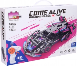 I pakken finder du 323 byggedele, en overskuelig billedvejledning uden tekst samt klistermærker til at fuldende designet. Bilen drives af en Li-ion batteripakke 3,7 V / 350 mAh (inkluderet), opladning sker via USB-kabel. På undersiden af bilen og på siden af controlleren finder du en praktisk ON/OFF-kontakt.