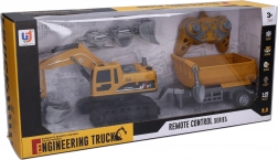Denne detaljerede RC-gravemaskine med trailer vil glæde små byggere med realistiske funktioner og stærkt udstyr. Takket være 2,4 GHz frekvens er styringen jævn og uden interferens, så flere modeller kan køres samtidigt. Udskiftelige redskaber gør det let at skifte fra gravning til læsning af træ eller nedrivning.