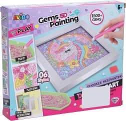 Skab dit eget funklende billede med motiv af en enhjørning. Dette kreative sæt indeholder alt, hvad du behøver for nemt at komme i gang – sten i forskellige farver, opsamlingspen, skål til sten, voks og ramme. Takket være den enkle fremgangsmåde er det ideelt til både børn og voksne.
