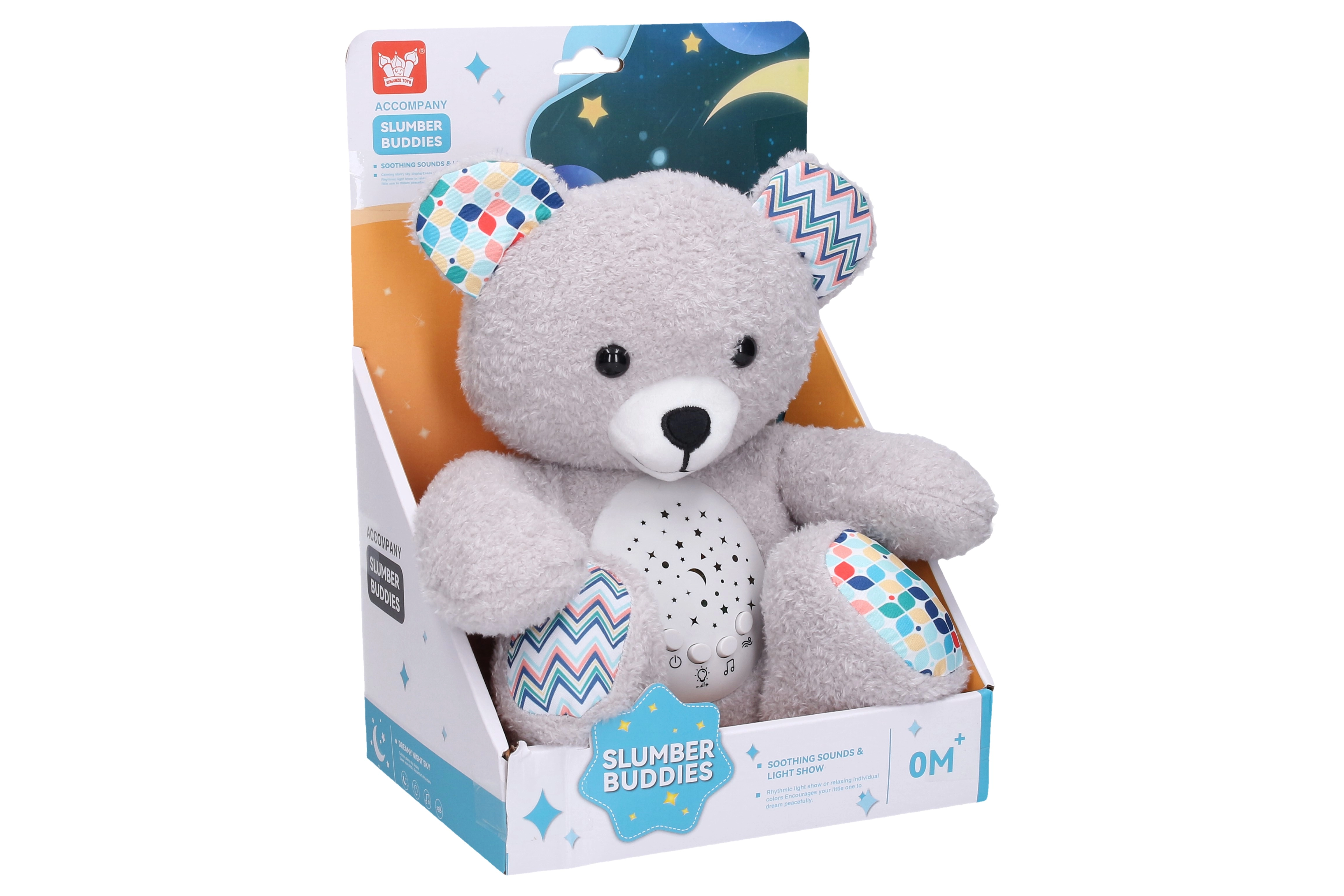 Denne bløde sovekammerat med projektion er en ideel ledsager til aftenrutinerne. Takket være den udtagelige projektor projiceres et blidt lys med tre lysstyrkeniveauer, som skaber en behagelig stemning til søvn. Der er 7 beroligende vuggeviser og 3 slags hvid støj, der nemt kan skiftes med et enkelt tryk.