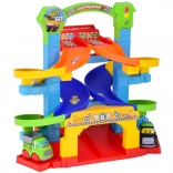 Denne spiralracerbane er et fantastisk valg til de første kapløb for små bilister. Farvede spiralbaner, startport og stabile søjler sikrer en jævn kørsel fra top til bund. Under legen træner børn hånd-øje-koordination, udvikler logik og fantasi og lærer samtidig om årsag og virkning.