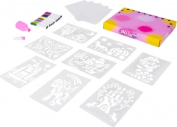 Dette unikke kreative sæt forvandler almindelig tegning til en oplevelse. Sæt en tusch i den manuelle pumpe, ret mod skabelonen og forstøv farven med lette tryk. Resultatet er effektfulde prikkede og fint sprøjtede motiver. Farverne kan skiftes frit under arbejdet, så hvert billede bliver helt unikt.