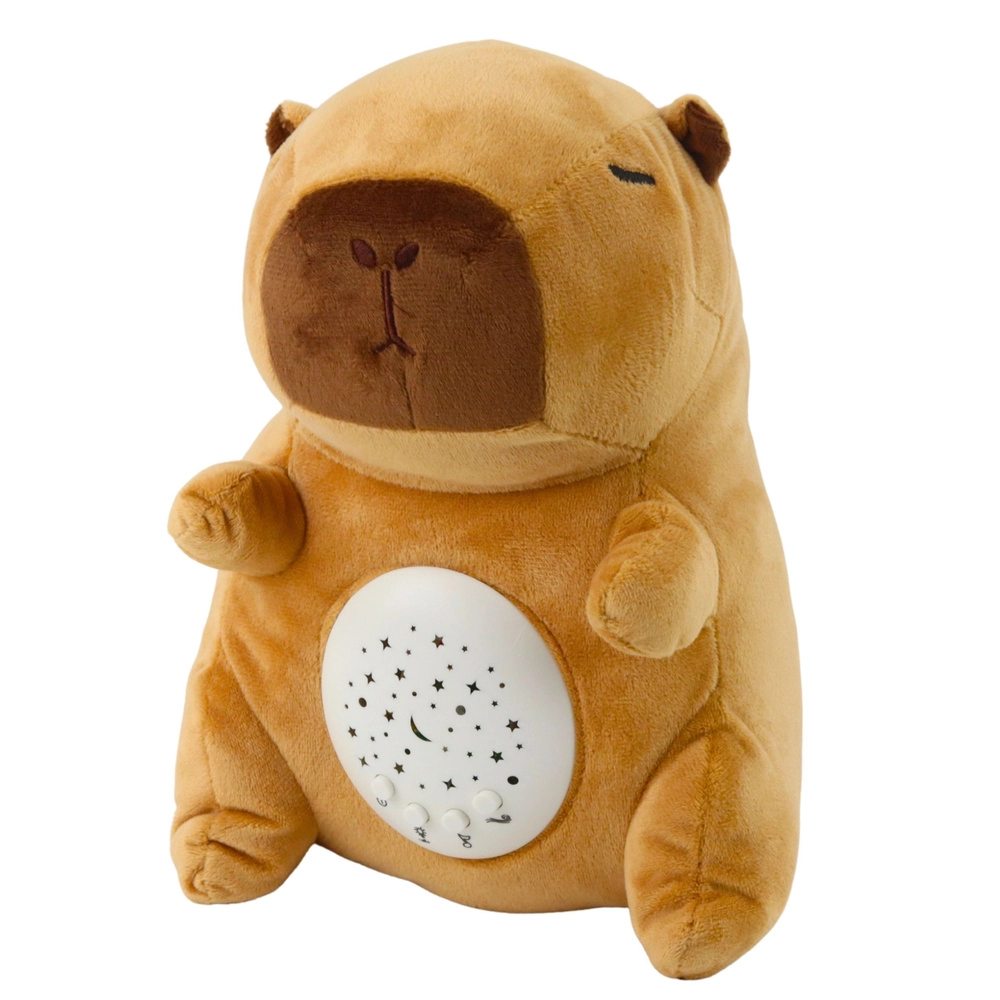Den søde plys-kapybara med indbygget stjerneprojektor er den ideelle makker til en rolig puttetid. Den fungerer som plyslegetøj, natlampe og lydafspiller i ét. Den tilbyder projektion af nattehimlen på loft og vægge, 3 lysstyrkeniveauer, 8 vuggeviser og beroligende naturlyde (bølgesus, hvid støj), som hjælper børn med at føle sig trygge om natten.