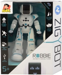 Mød den robotiske makker Robbie Zigybot, som bringer masser af sjov og læring. Den tilbyder IR-styring og håndbevægelser, programmering af bevægelser, 20 ansigtsudtryk med LED, robotlyde og dans. Takket være USB-opladning er den altid klar til næste mission og vil glæde børn fra 5 år.
