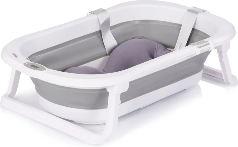 Chipolino sammenklappeligt babybadekar med pude og stativ Malibu grå