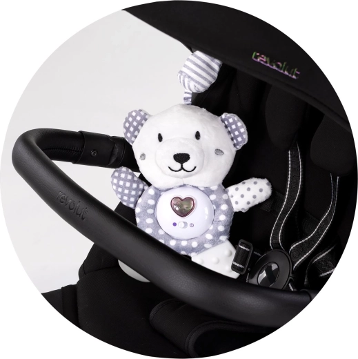 Leder du efter en blid makker, som både underholder og beroliger din baby? Plys-bamsen CHIPOLINO Teddy Bear kombinerer bløde materialer, behagelige melodier og et mildt lys for at skabe et hyggeligt miljø til både hvile og leg. Med den praktiske clips kan den let sættes fast på barnevogn, autostol eller tremmeseng.