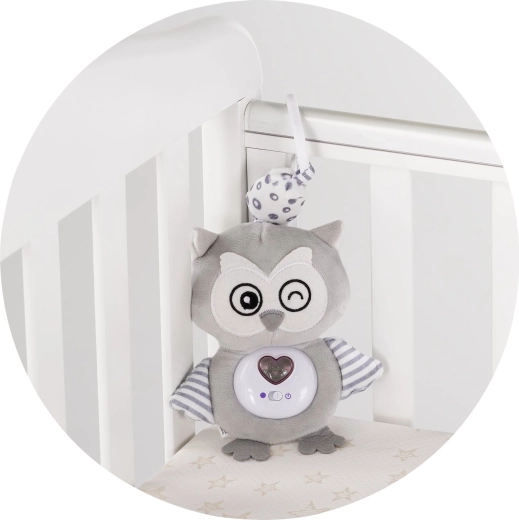 Plyslegetøj til barnevogn og tremmeseng med melodier CHIPOLOINO Ugle