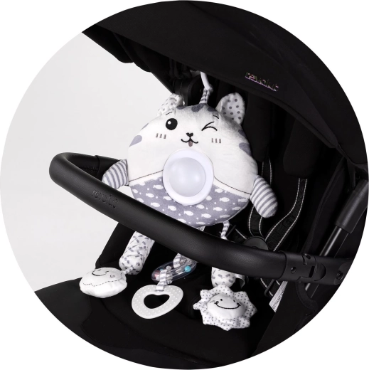 Den plysset kat Big Kitty er den ideelle ledsager til babyen – den beroliger, underholder og stimulerer sanserne. Takket være den universelle krog kan den nemt fastgøres til barnevogn, autostol eller tremmeseng. Behagelige materialer, blide farver og lyseffekter skaber en hyggelig atmosfære til både leg og puttetid.