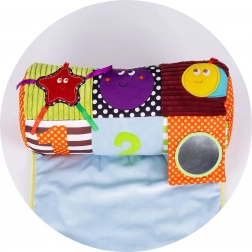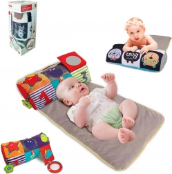 Kontrastfarver, teksturer og små legetøj understøtter udvikling af syn, berøring og koordination. Takket være den lave vægt er sættet ideelt både hjemme og på farten – altid klar til sikker leg og afslapning.