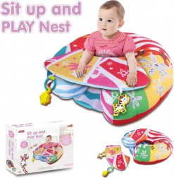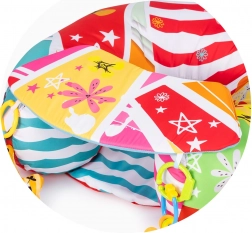 Takket være den bløde og stabile fyldning giver den sikker støtte, mens de farverige mønstre og interaktive elementer hjælper med at udvikle sanserne og hånd–øje-koordinationen. Det praktiske materiale er let at rengøre, så den er klar til hverdagens eventyr.