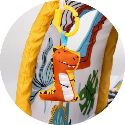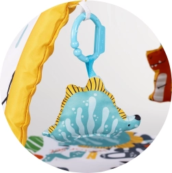 Den polstrede måtte med bue og ophængte legetøj motiverer babyen til at gribe og styrker hånd-øje-koordinationen.