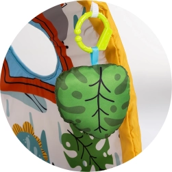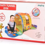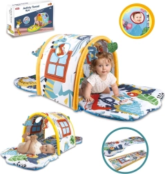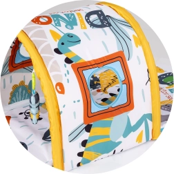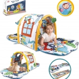 Takket være den sikre og komfortable udformning tilbyder tæppet et behageligt sted til leg både på mave og ryg. Vinduer og detaljer på tunnelen opfordrer til at kigge ind og gemme sig, hvilket udvikler nysgerrighed og fantasi. Farverige elementer og teksturer giver rige stimuli til sanseudvikling og de første sociale interaktioner med forældre.