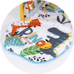 Skab et sikkert og stimulerende hjørne til din baby med legetæppet med tunnel CHIPOLINO House. Det tilbyder blød polstring, en bue med hængende legetøj og farverige motiver til sansemæssig stimulering, støtter hånd-øje-koordination og udvikling af grovmotorik, og giver samtidig et sikkert og behageligt miljø til den første leg, udforskning af former og farver.