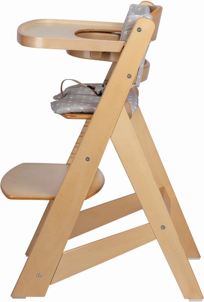 Den stabile trækonstruktion, 3-punkts sikkerhedssele og den bløde polstring mindsker risikoen for fald og giver komfortabel siddekomfort.