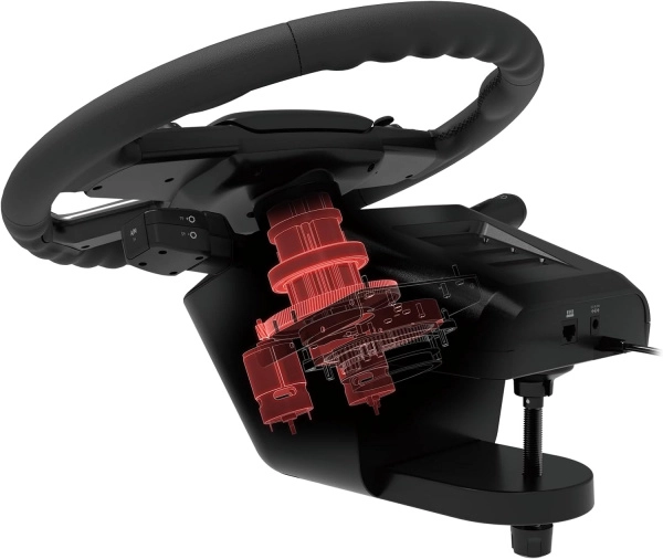 HORI Force Feedback Truck Control System til PC er designet til maksimal realisme og komfort på lange ture. Rattet i fuld størrelse med kunstlæder og 1800° rotation simulerer en ægte lastbil, mens den dobbeltmotorerede Force Feedback præcist gengiver vægt, vejgreb og vejoverflader. Integrerede greb til lys og bremser samt et rigt sæt knapper giver dig direkte og hurtig kontrol over alle funktioner.