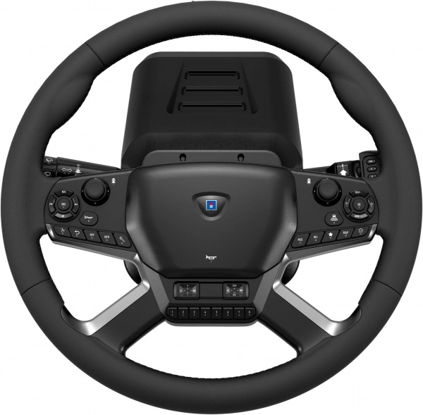 Rattet på 40 cm med kunstlæderoverflade og 1800° drejeområde giver en autentisk følelse af at styre tunge lastbiler på vej og på plads.