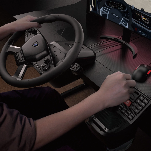 Udviklet i samarbejde med SCS Software for optimal kompatibilitet med ETS2 og ATS. Pakken indeholder Steam-nøgler til begge spil – tilslut, konfigurer og tag ud på de åbne veje.